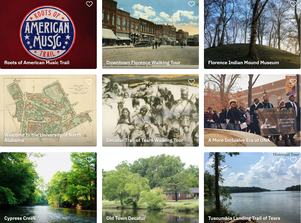 Muscle Shoals National Heritage Area works with the STQRY platform to offer you several options for “visiting” us. With our online self-guided tours, you can explore remotely through your cell phone, tablet or desktop or laptop computer — wherever you are! Simply choose a tour and learn about the included sites through accompanying text and photos, clicking the “Next” button in the bottom left corner to navigate. In addition to using the tours remotely, you also can use them as personal guides when you’re visiting in person. Access each tour’s map as you make your way through the marked locations — you’ll find a mix of both walking and driving trails to follow. And, of course, you can use the online tours to discover our six counties’ countless stories before you visit — mapping out your must-see destinations. Any way you use them, the online tours are a great tool to enhance your MSNHA discoveries.